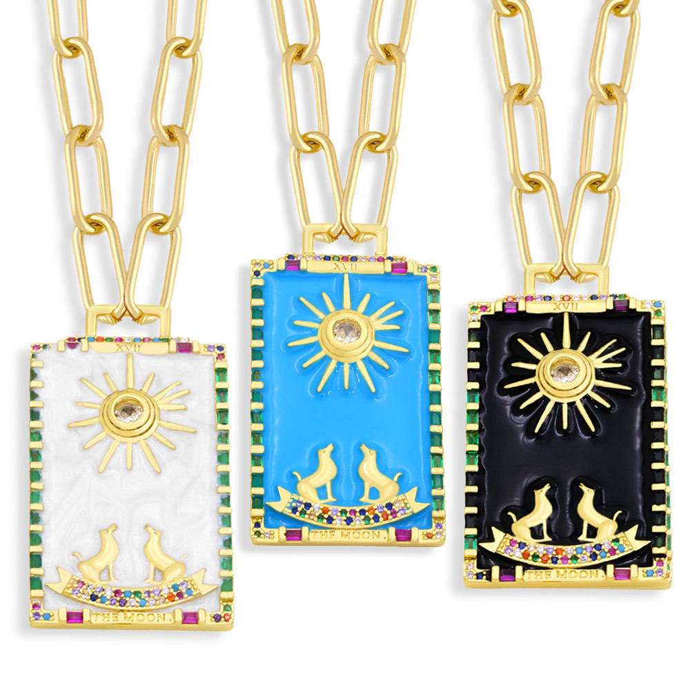 Collier de tarot pour femme, pendentif en cuivre plaqué or 18 carats, style européen et américain, peinture à l'huile, nkz16