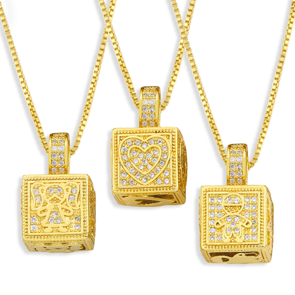 Collier hip-hop européen et américain, pendentif en forme de cube de zircon micro-incrusté, pendentif papillon, vente en gros, nkz06