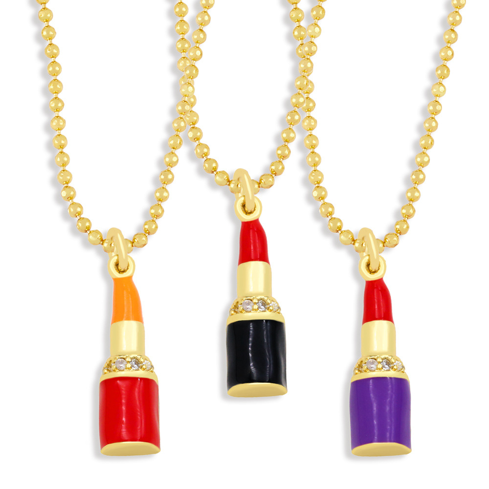 Collier pendentif rouge à lèvres design de niche créatif européen et américain, collier en diamant goutte de couleur douce et cool nka005
