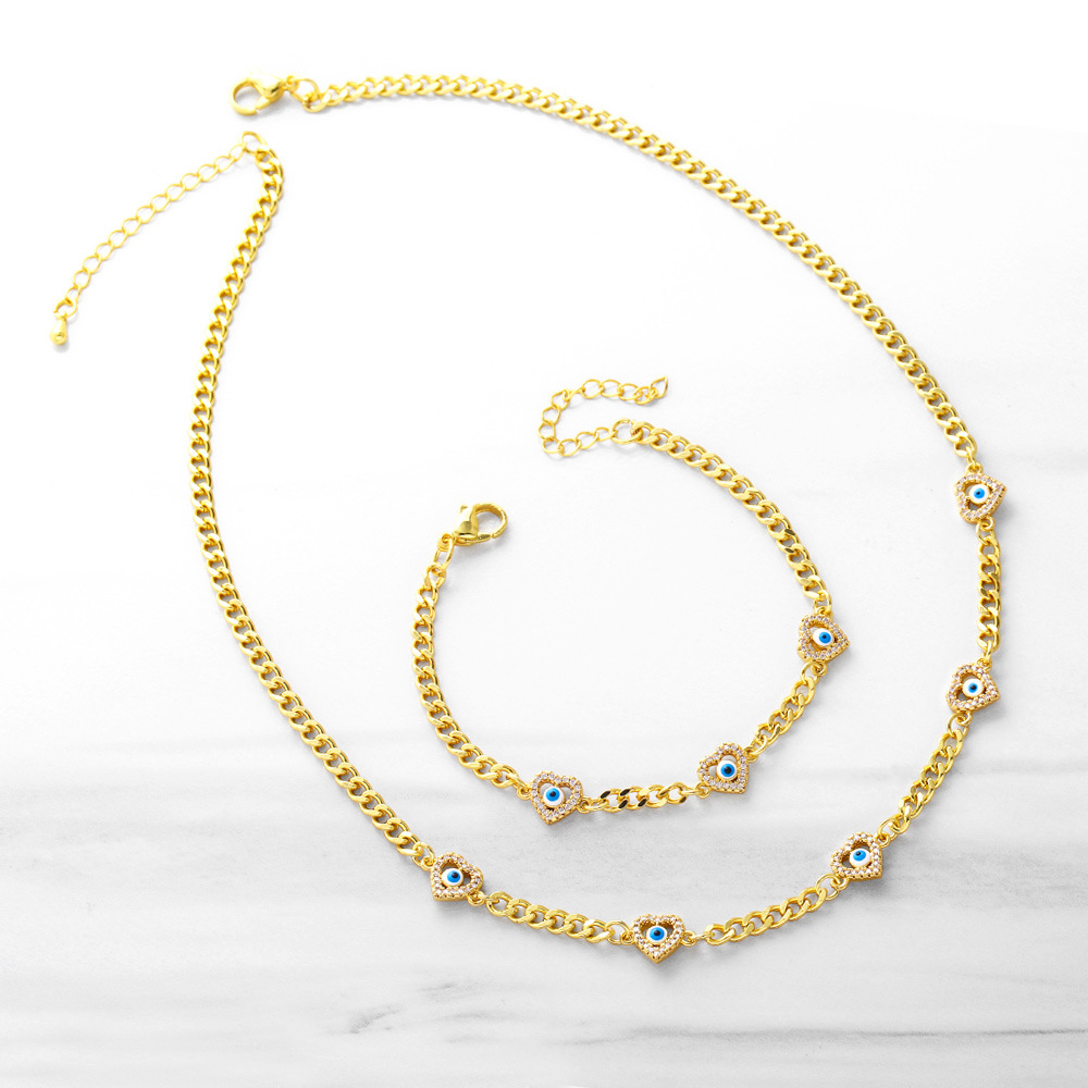 Collier œil d'amour hip-hop européen et américain pour femme, ensemble de bracelets à chaîne de clavicule, design simple et froid, nka013