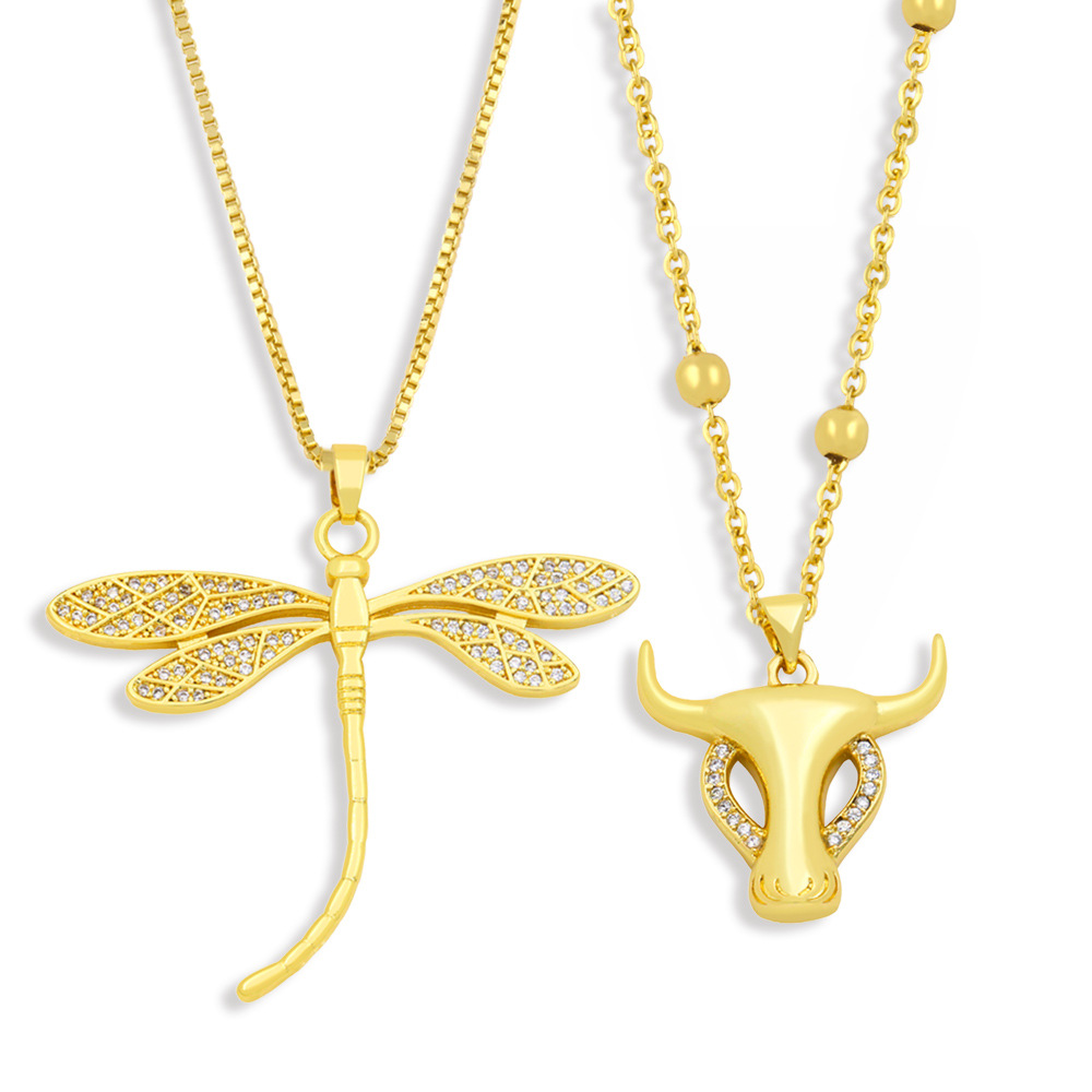 Collier libellule pour femme, chaîne de clavicule en diamant, style hip-hop européen et américain, créatif, tête de taureau, nka002