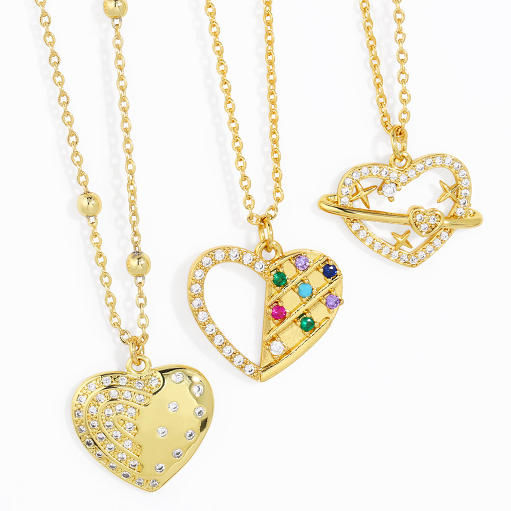Collier en or véritable plaqué or et zircon pour femme, chaîne de clavicule de luxe haut de gamme, pendentif en forme de cœur, vente en gros, nkb765