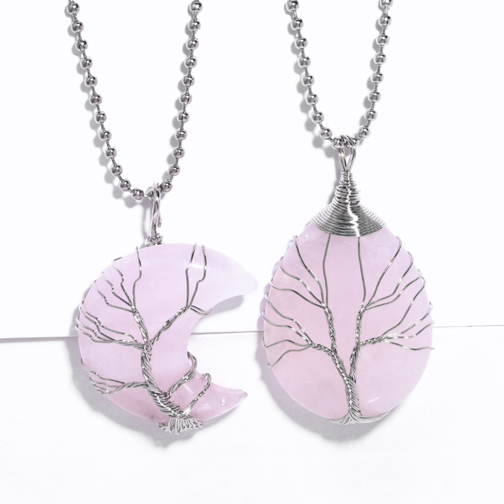 Collier pendentif arbre de vie en cristal rose, pendentif goutte d'eau, collier lune, vente en gros, européen et américain, nkp80