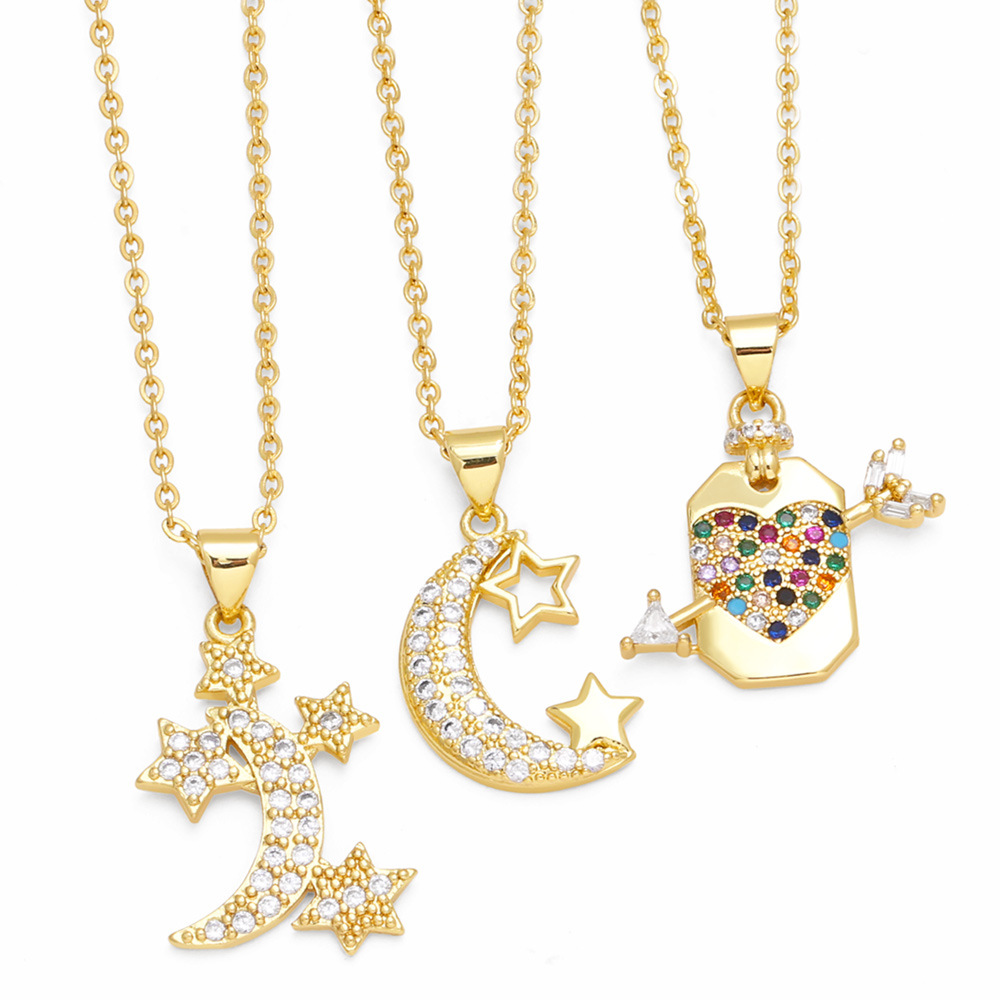 Collier simple européen et américain en zircon, étoile de lune, style féminin, niche, chaîne de clavicule, nks06