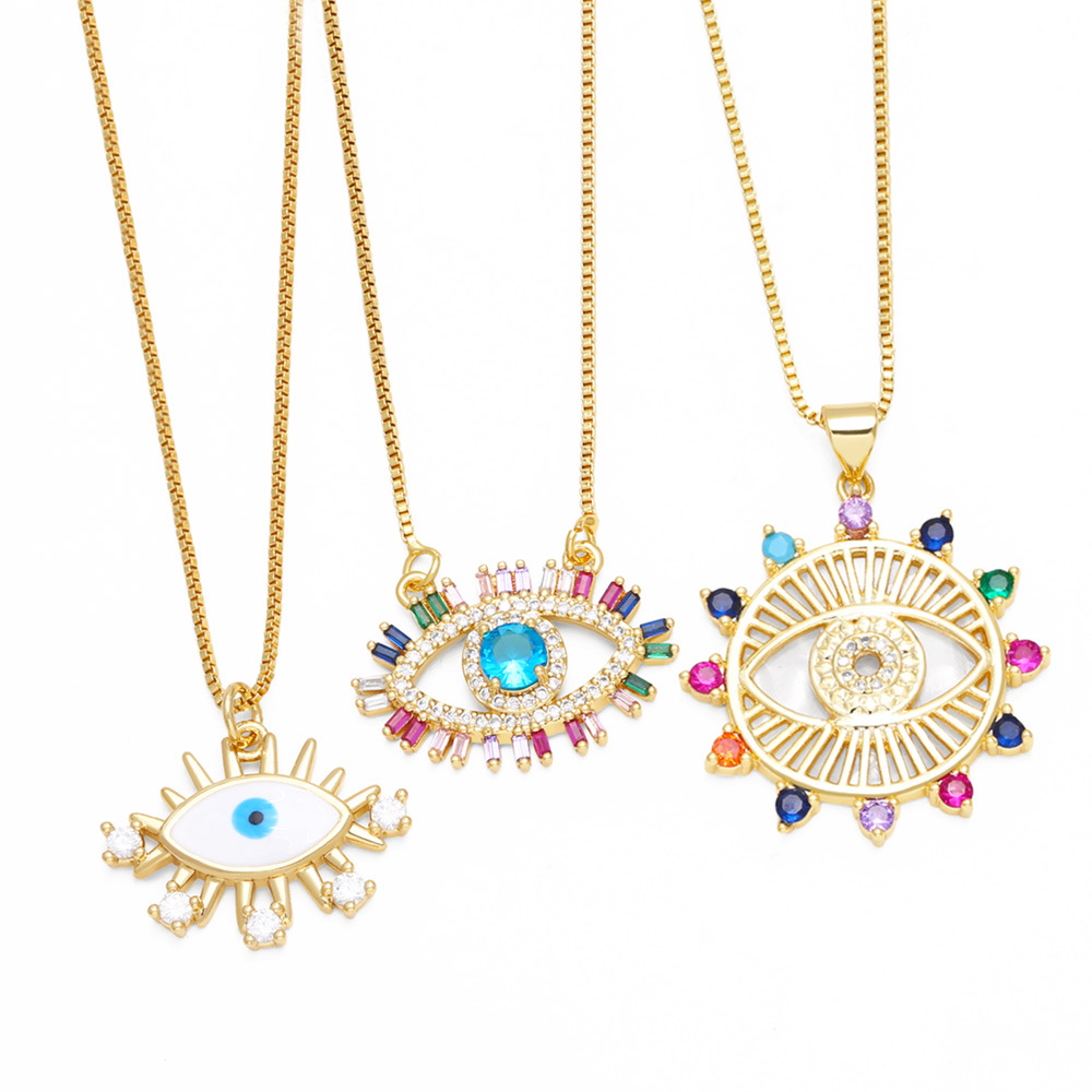 Collier pendentif œil du diable, personnalité européenne et américaine, incrusté de zircons colorés, chaîne de clavicule, NKR90