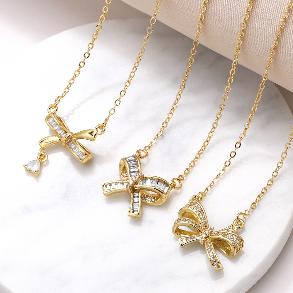 Collier pendentif nœud plaqué or en zircon, chaîne de clavicule pour la fête des mères, nkw63