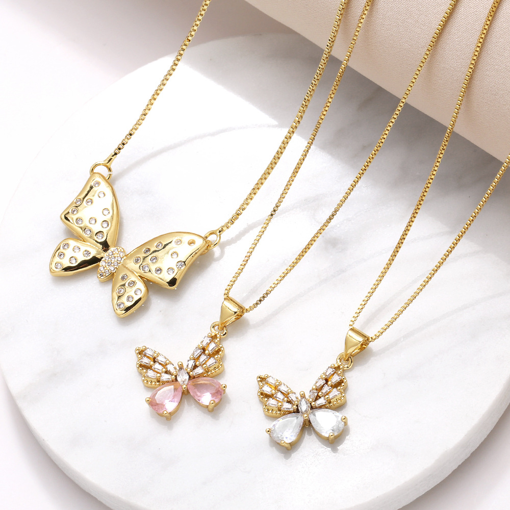 Collier papillon en plaqué cuivre véritable or incrusté de zircons, bracelet papillon, chaîne de clavicule nks95