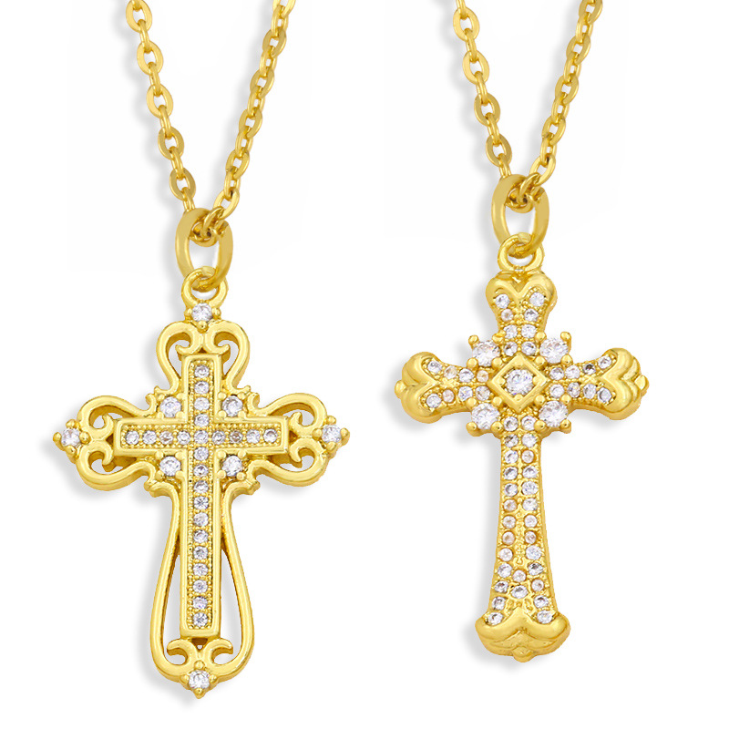 Pendentif hip-hop européen et américain en forme de croix, micro-incrusté de zircons, personnalité rétro, bijoux hip-hop pour hommes et femmes, nkw38