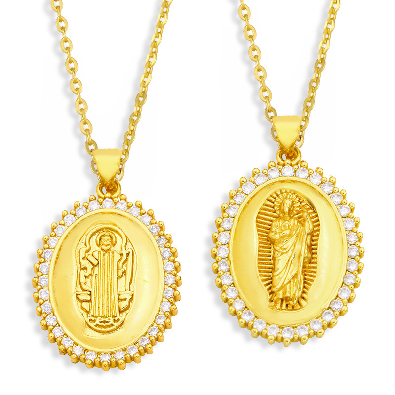 Collier Madonna, collier de mode européen et américain, pendentif incrusté de zircons, plaqué or 18 carats, collier pour femme nkw43