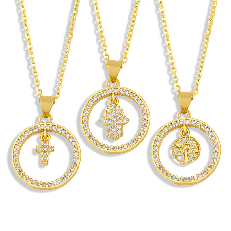 Collier européen et américain pour femme, chaîne de clavicule, géométrique, ronde, creuse, croix, paume, incrustée de zircons, nky19