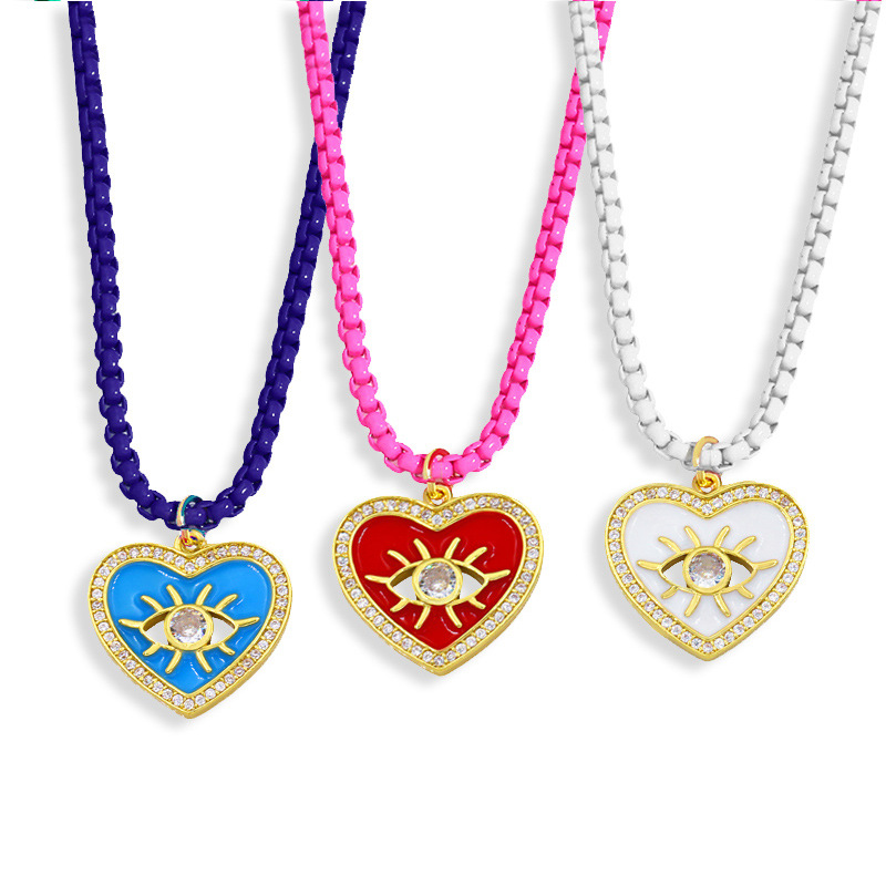 Collier d'amour de mode européenne et américaine en forme d'œil incrusté de zircons colorés, chaîne de clavicule, chaîne de pull nky15