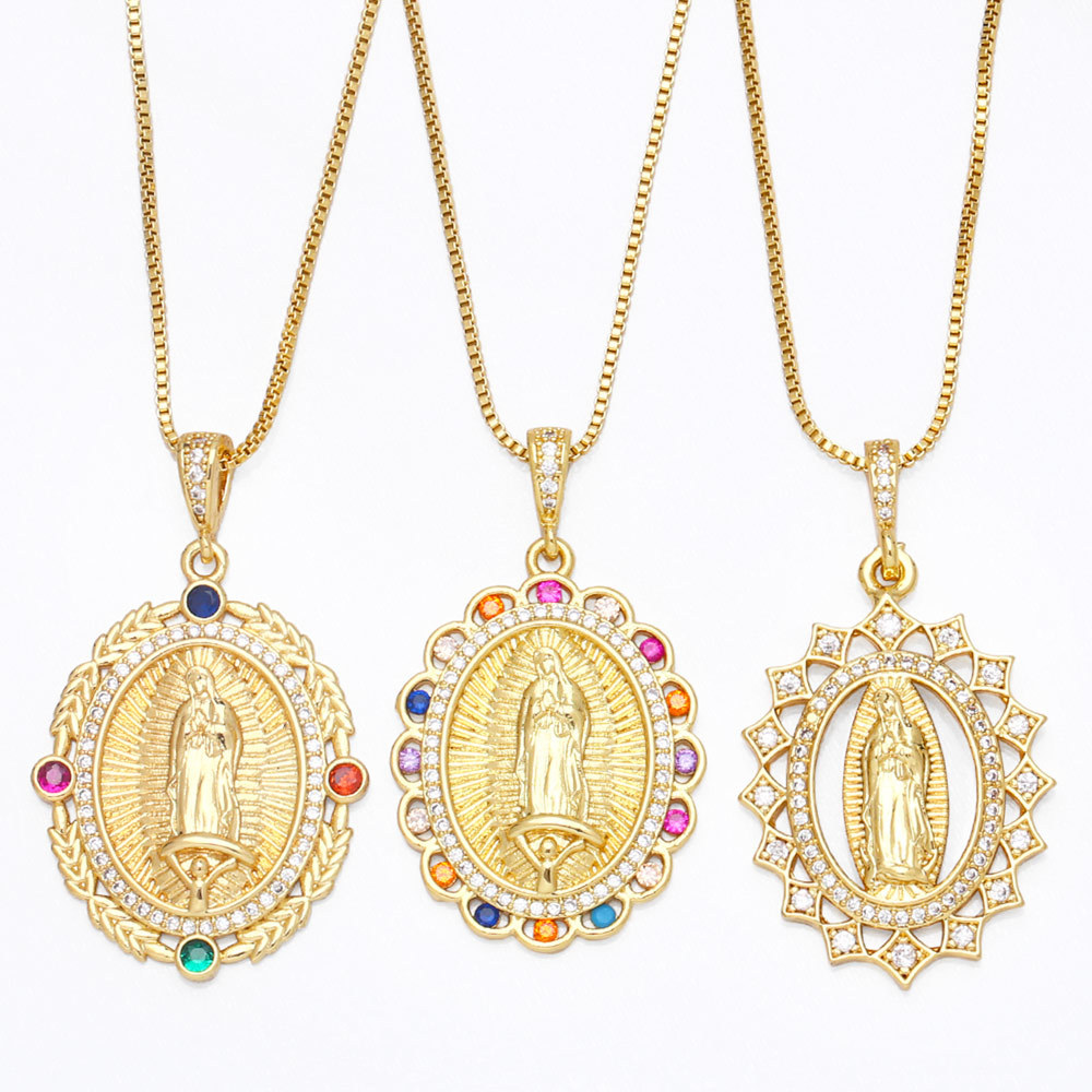 Collier d'accessoires religieux populaires en Europe et en Amérique, pendentif amour Vierge Marie avec collier diamant et zircon nkb035