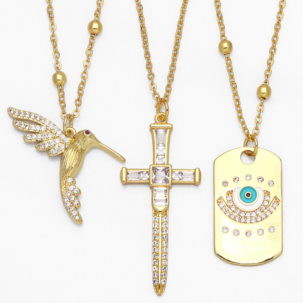 Collier avec pendentif croix œil du diable, personnalité créative, chaîne de clavicule hip-hop tendance européenne et américaine, nkb092