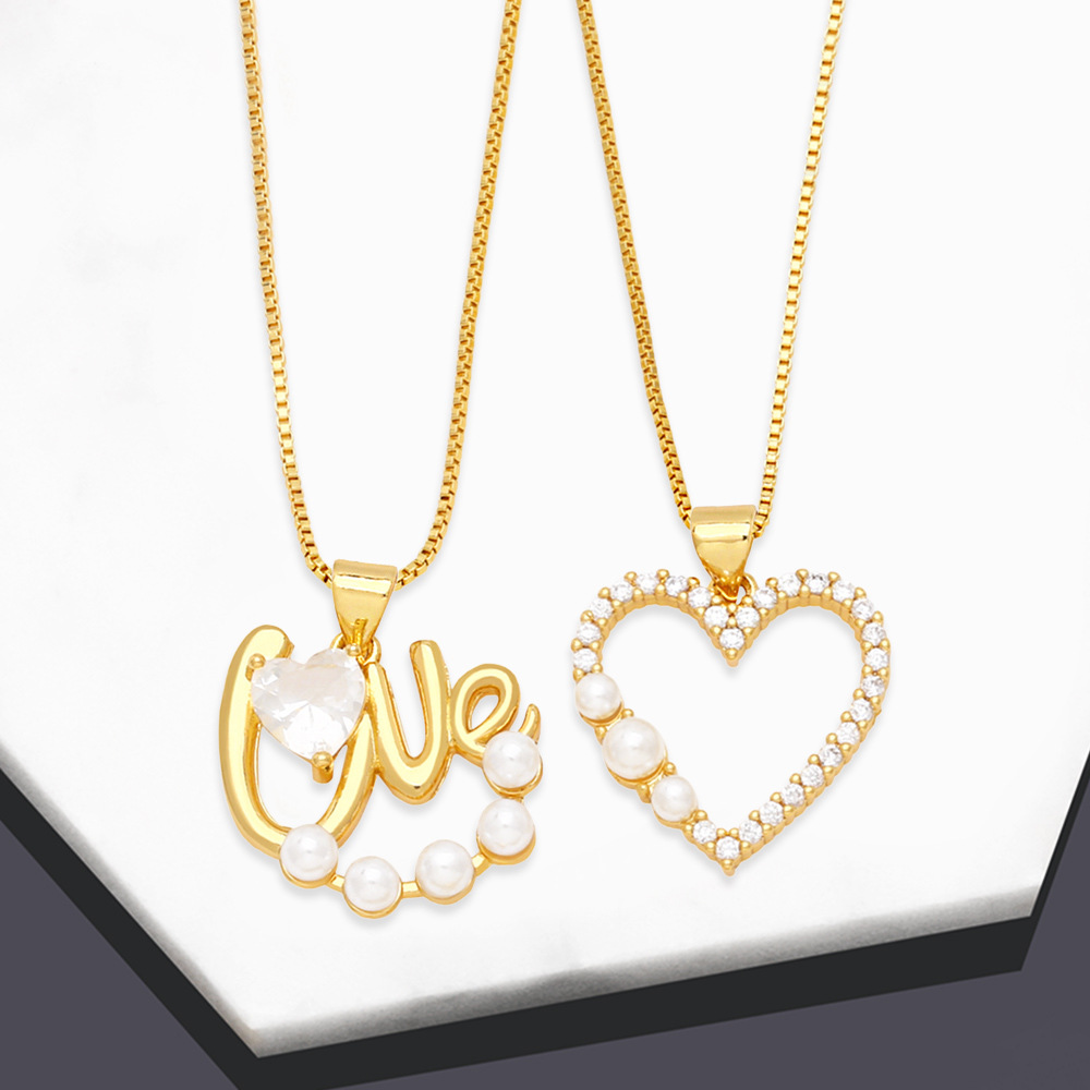 Collier d'amour de style européen et américain pour femme, micro-incrusté de perles, pendentif lettre d'amour, cadeau de Saint-Valentin nkb539