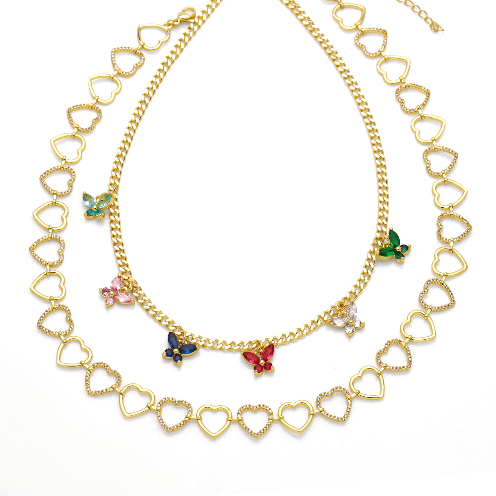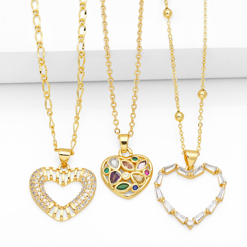 Collier d'amour polyvalent tempérament femme mode européenne et américaine simple micro-incrusté zircon coloré chaîne de pull en forme de cœur nkb348