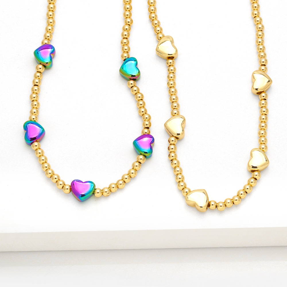 Collier de perles hip-hop européen et américain pour femme, chaîne de clavicule polyvalente en forme de cœur colorée, nkb144