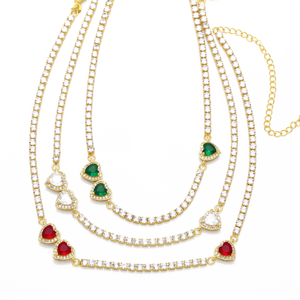 Collier d'amour de style européen et américain pour femme, design de niche, pendentif en forme de cœur en zircon coloré micro-incrusté, chaîne de pull nkq04