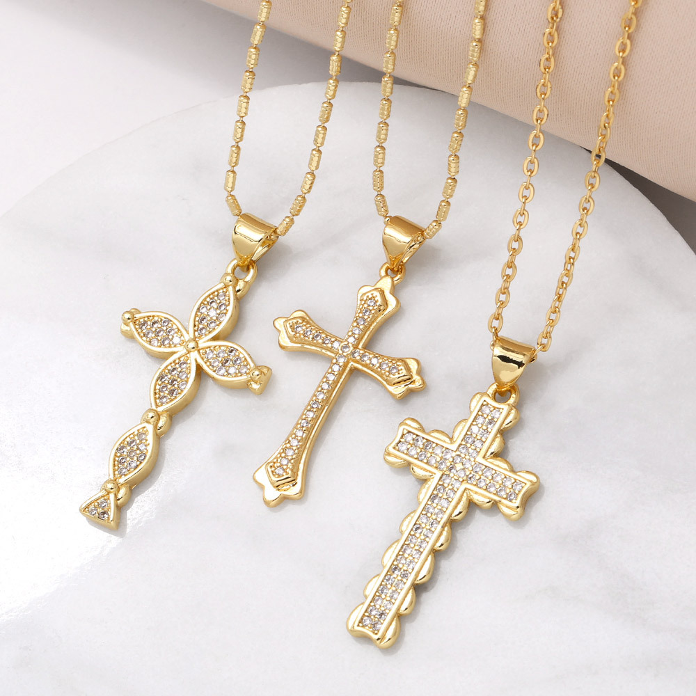 Collier pendentif croix en plaqué or véritable pour femme, chaîne de clavicule en zircone incrustée, tendance, nkv18