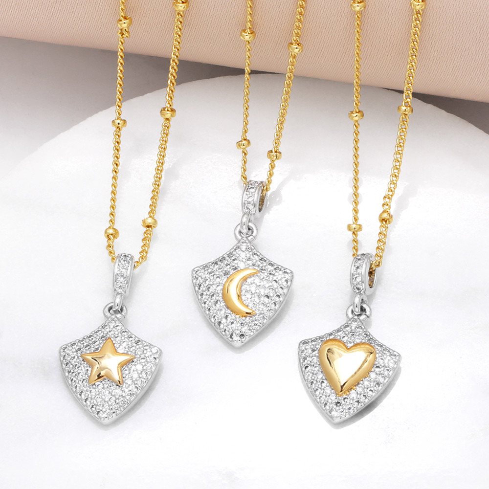 Collier avec pendentif en forme de bouclier et de lune pour femme, chaîne de clavicule entièrement en zircon, étoile à cinq branches, nky71