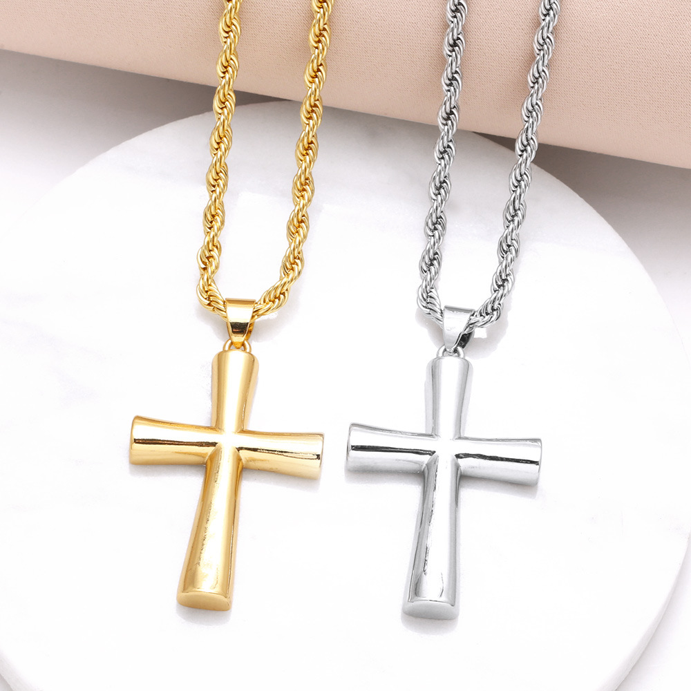 Collier avec pendentif en croix lisse pour homme, chaîne de clavicule en or 18 carats plaqué cuivre, tendance, nkt91