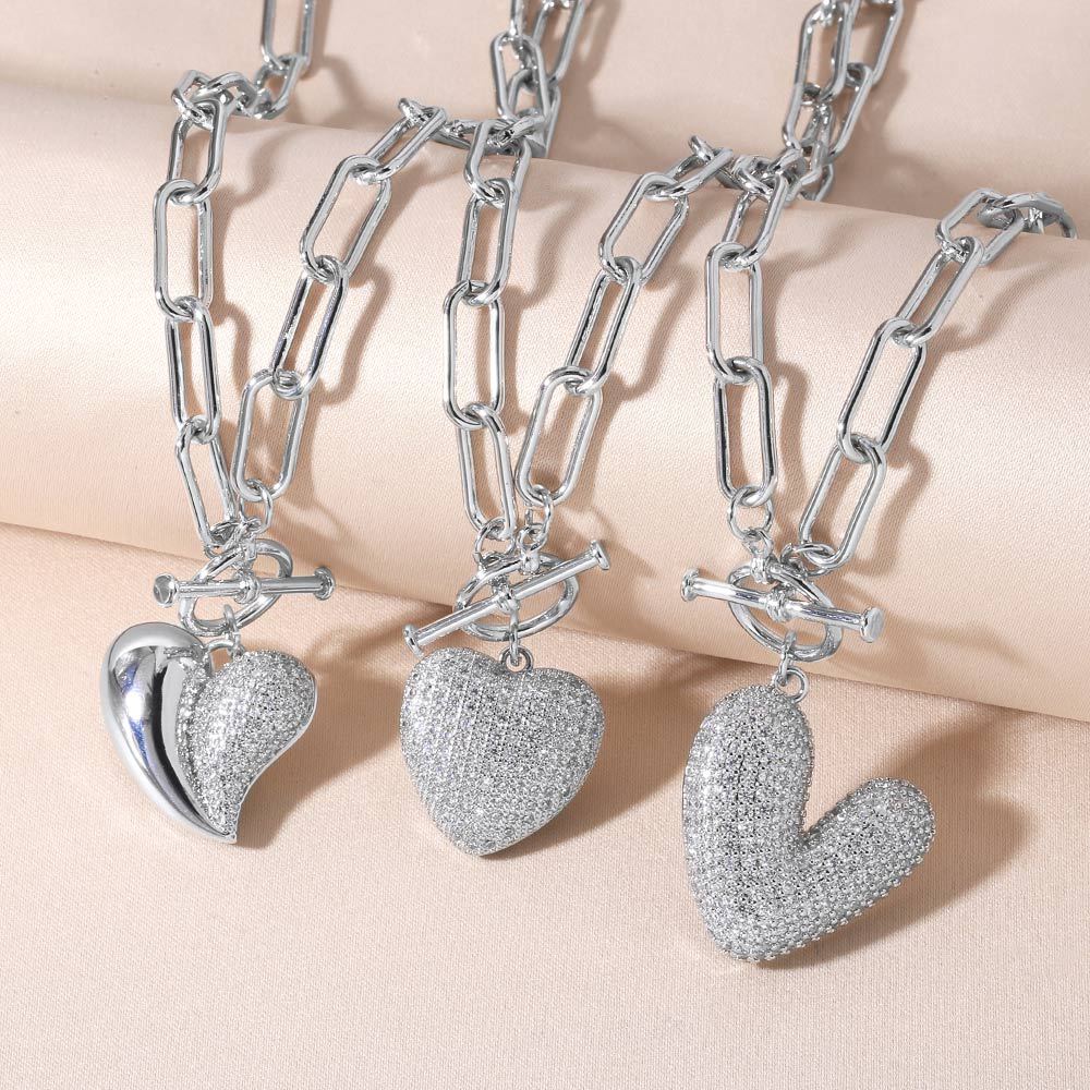 Collier avec pendentif en forme de cœur en zircon pour femme, chaîne de pull plaquée or, nkp09