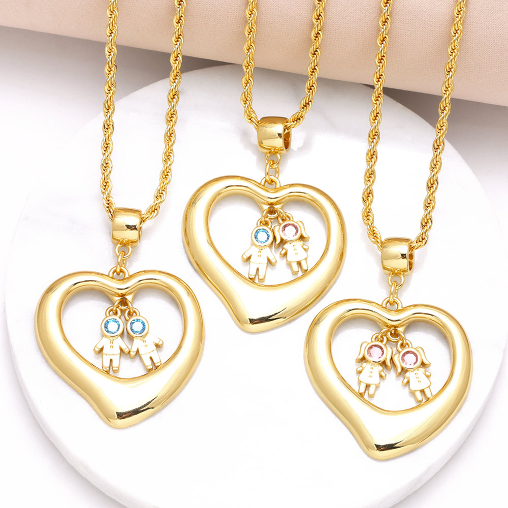 Collier pendentif amour garçon et fille, chaîne de pull en zircon plaqué or, mode européenne et américaine nkb158