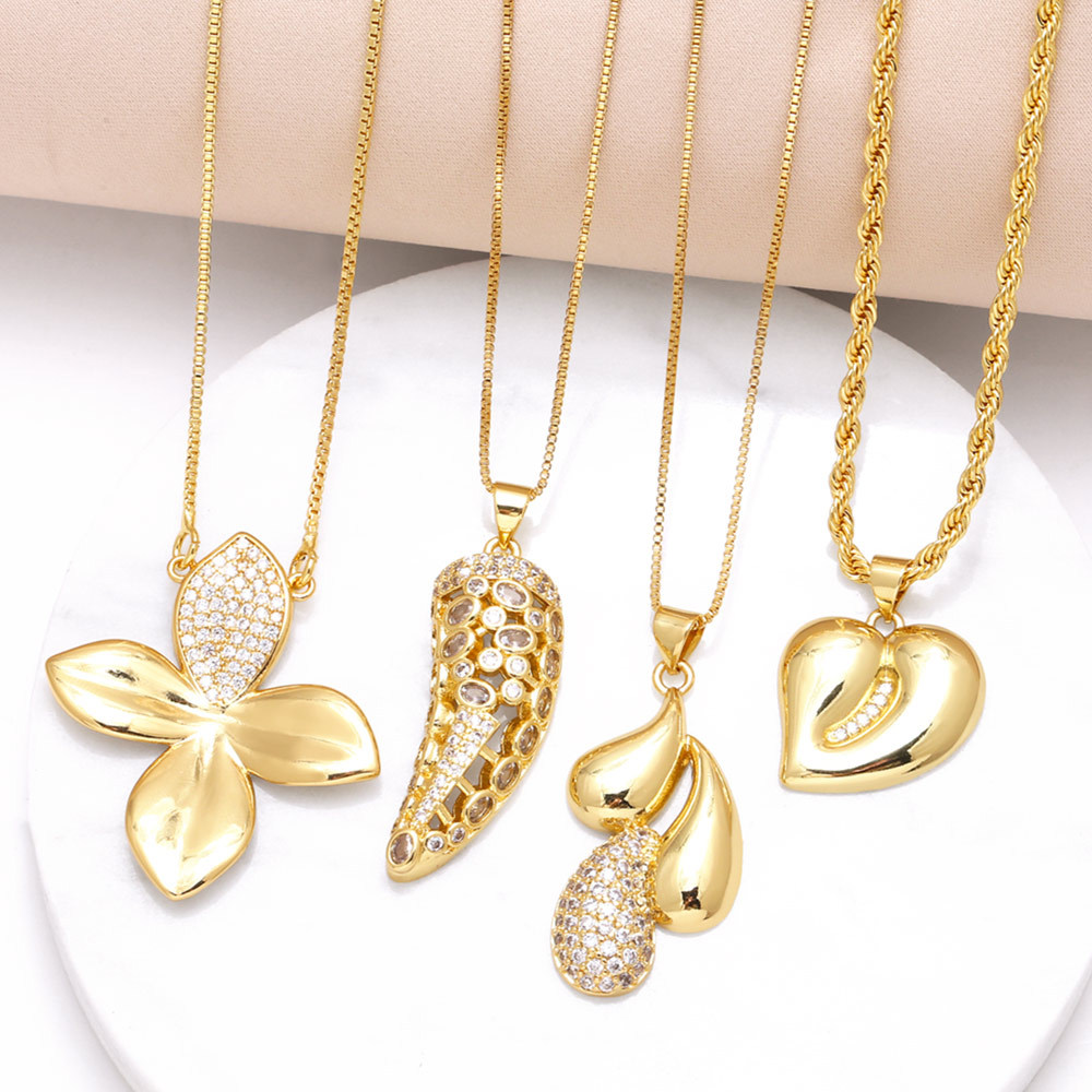 Collier pendentif en ivoire européen et américain pour femme, plaqué or, incrusté de zircons, chaîne de clavicule en forme de fleur d'amour, nkz03