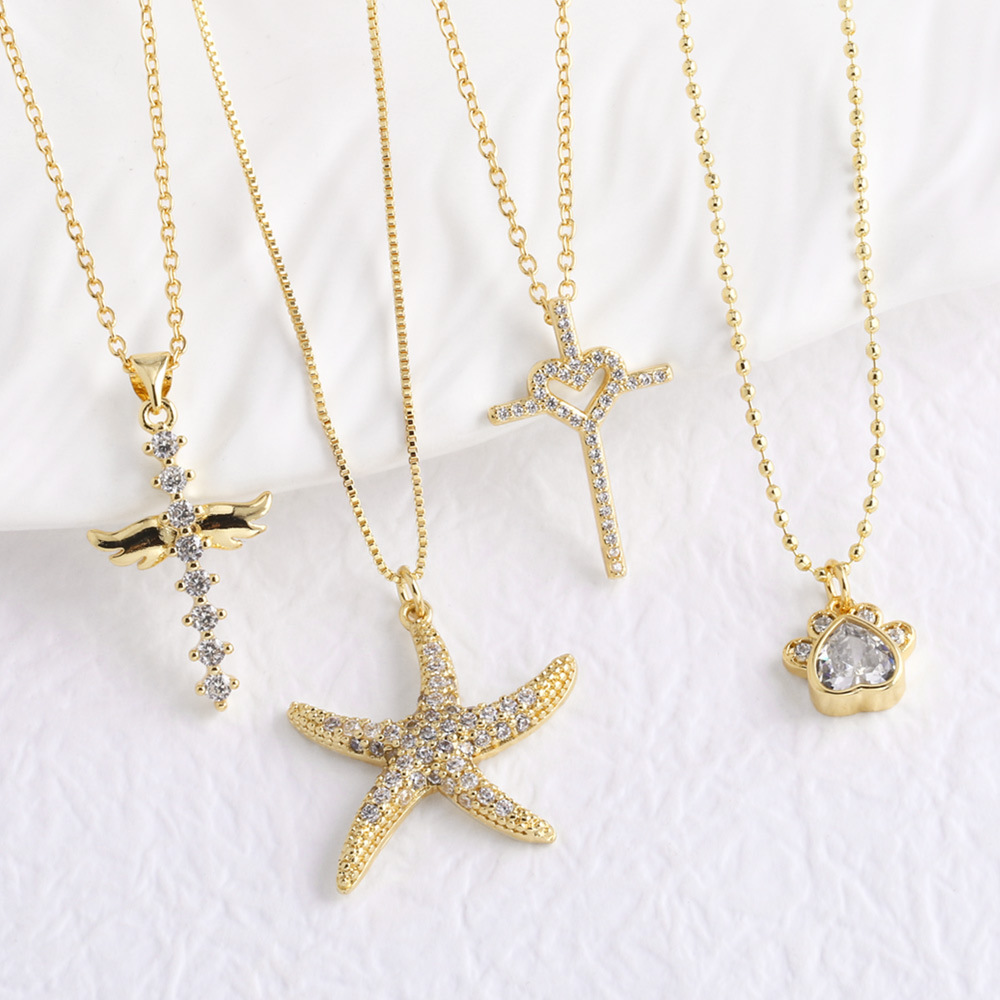 Collier avec pendentif en forme d'étoile de mer et croix, bijou tendance, chaîne de clavicule, nkb576