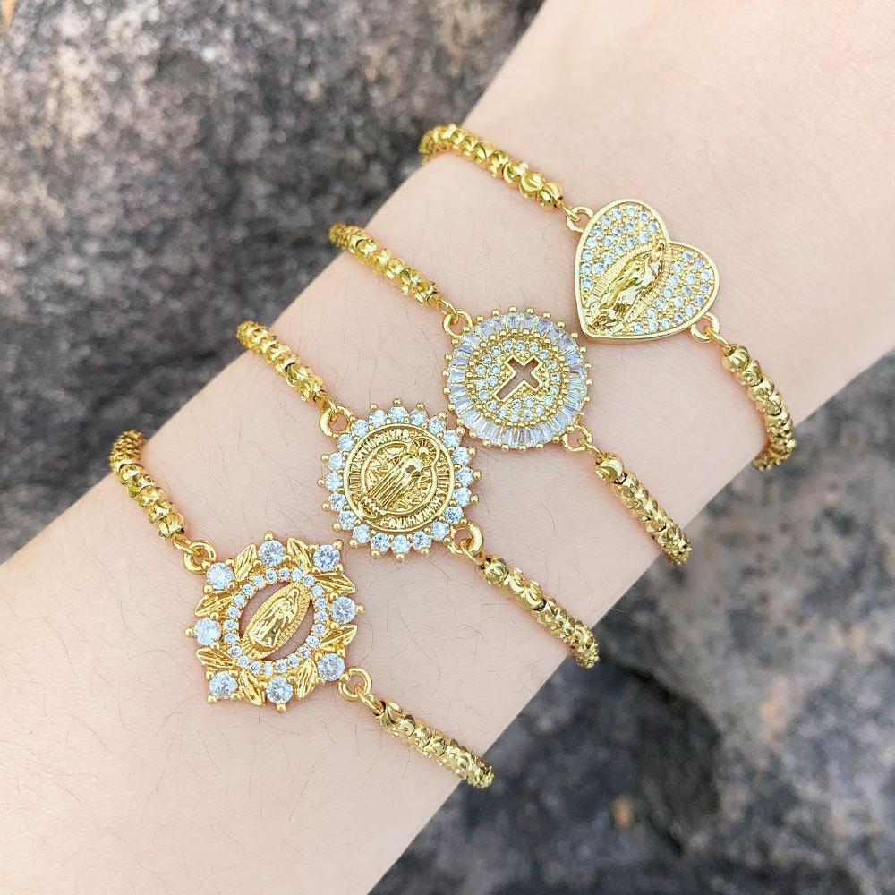 Bracelet croix rétro géométrique en forme de cœur pour femme, bijou européen et américain, style Vierge Marie, brb92