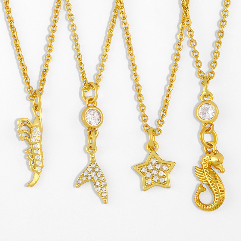 Collier de perles style océan, pendentif micro-incrusté de zircons, coquillage, hippocampe, accessoires, vente en gros, nkp67