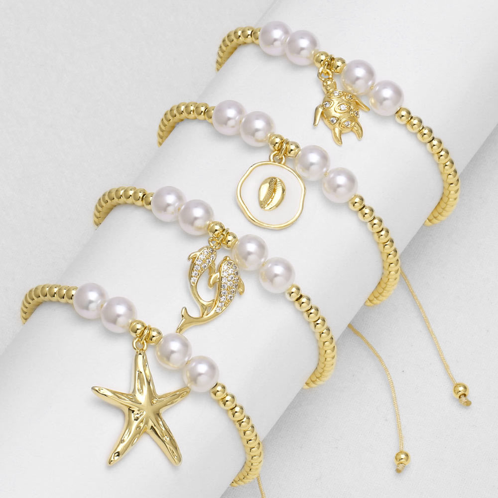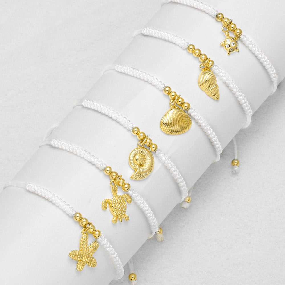 Bracelet en plaqué or pour femme, bijou tendance, pendentif tortue, étoile de mer, perle, océan, bre38