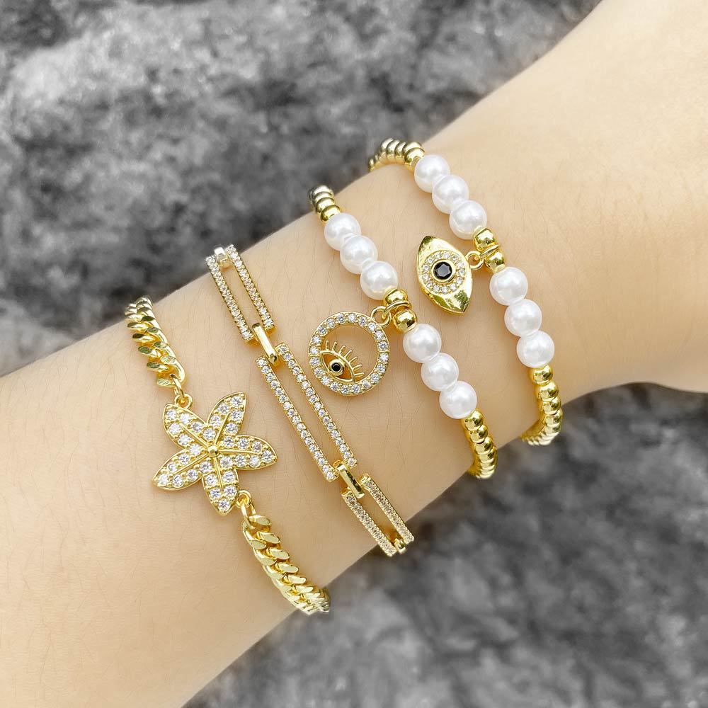 Bracelet pendentif œil du diable en perles européennes et américaines, bijou féminin plaqué or en zircon, étoile de mer, brh72