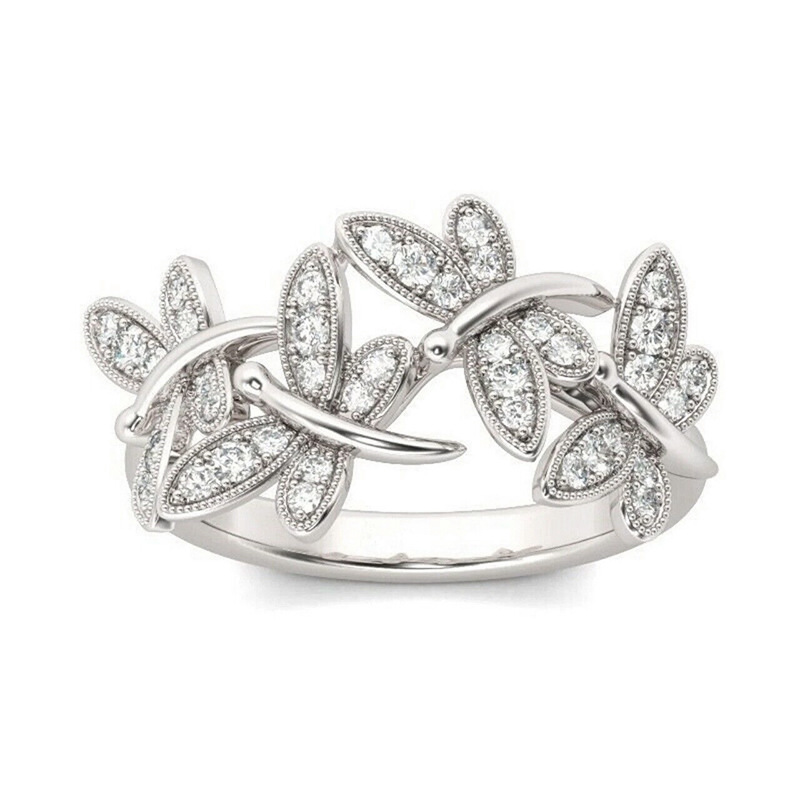 Bague de luxe légère micro-incrustée européenne et américaine, anneau lumineux et brillant en forme de libellule et de papillon, anneau floral haut de gamme