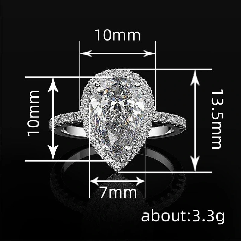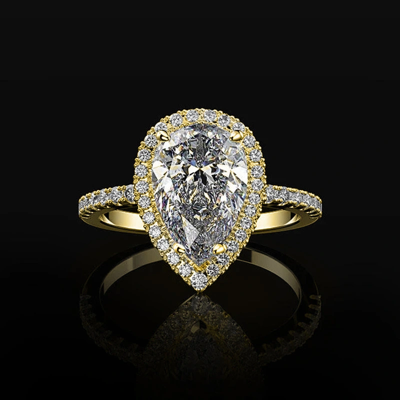 Bijoux de commerce électronique, bague de mariage créative en zircon scintillant en forme de larme, bijoux de mariage pour femmes en gros