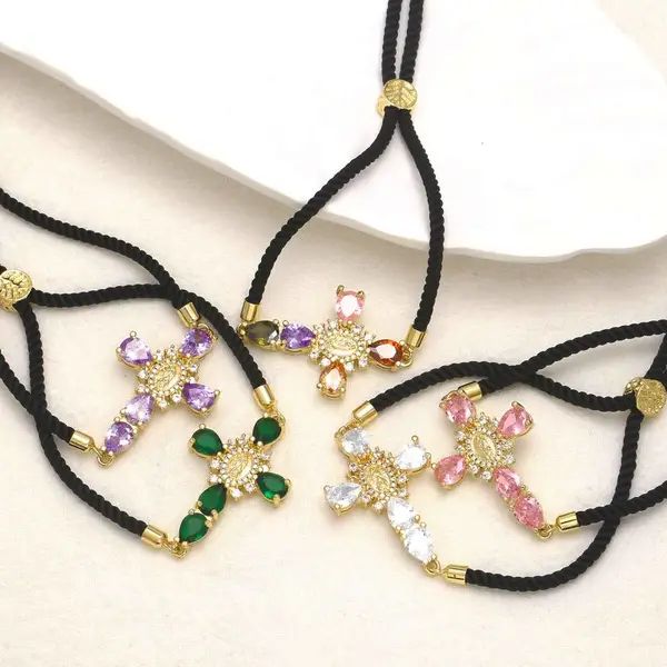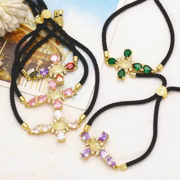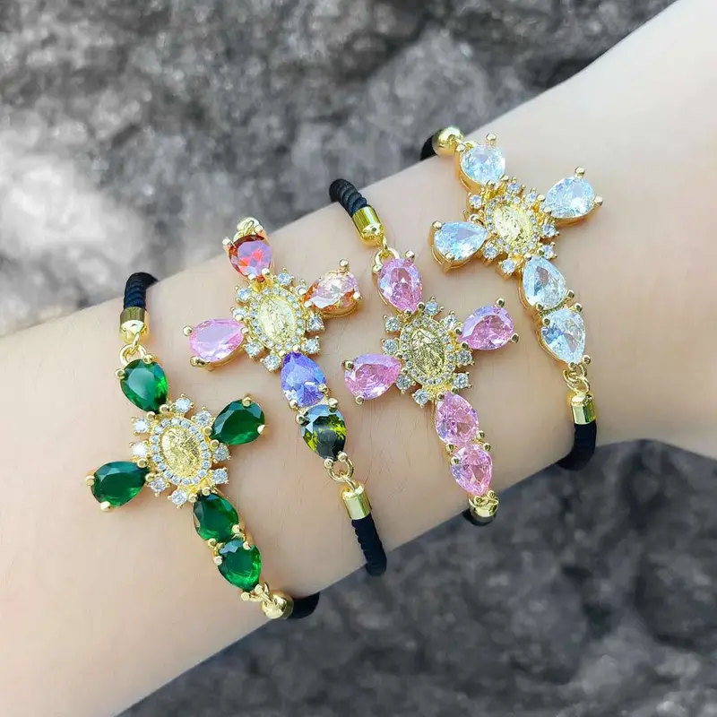 Bijoux en Europe et aux États-Unis, pendentif en zircon micro incrusté, personnalité créative, bracelet croix Notre-Dame, vente en gros, bre66