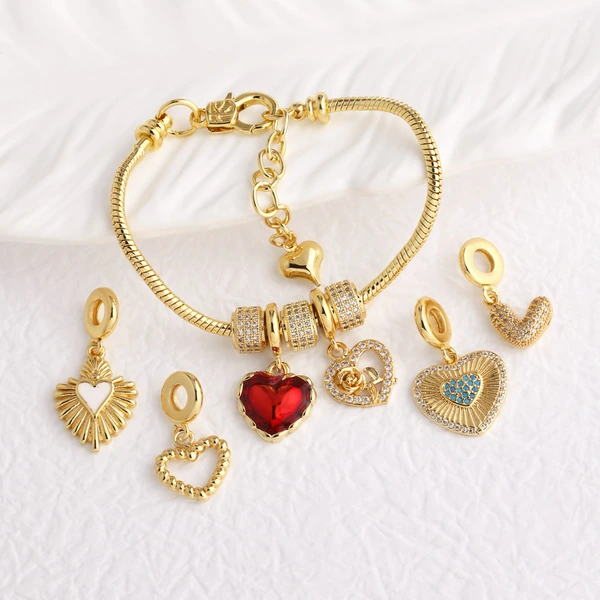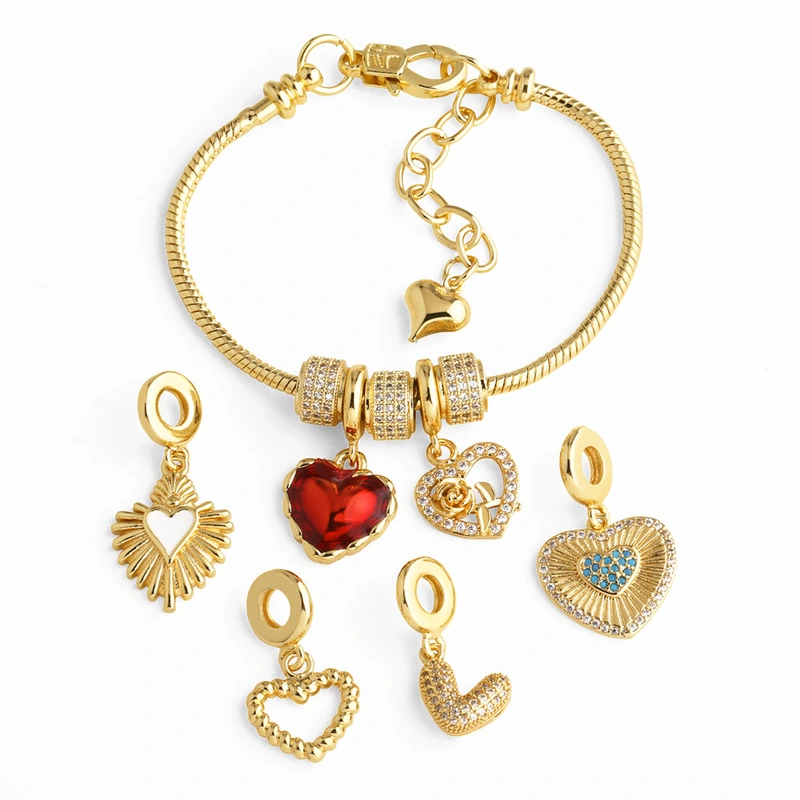 Bijoux Europe et États-Unis, vente en gros, pendentif en forme de cœur en zircon, accessoires pour bracelet à faire soi-même, bracelet BRK87