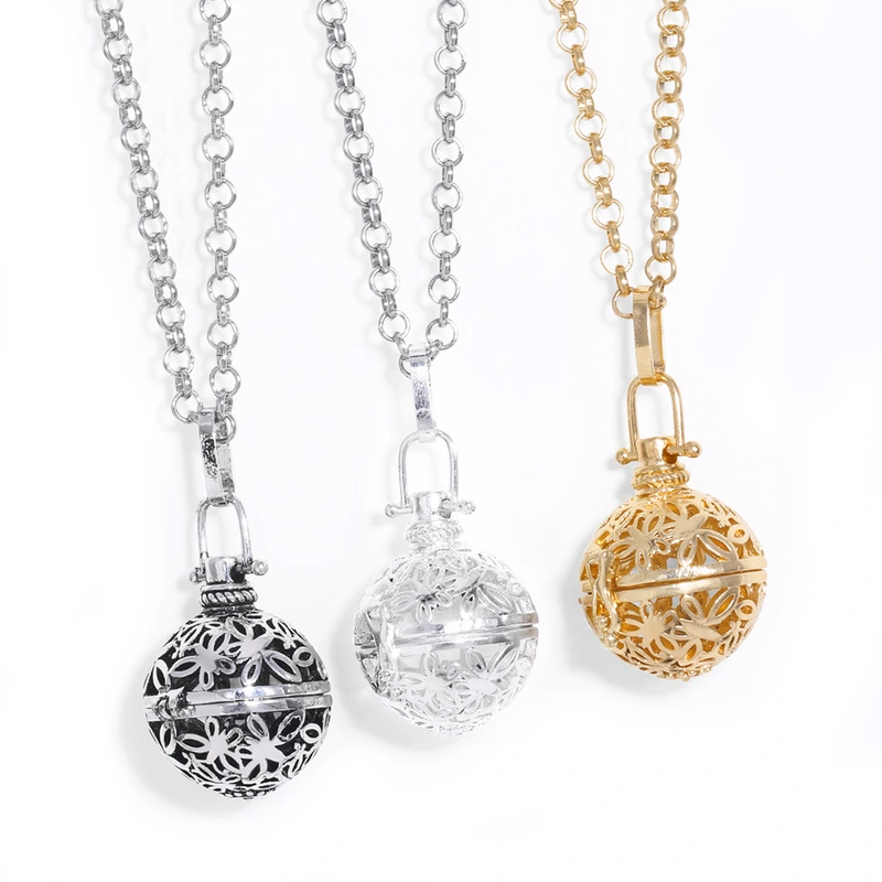 Bijoux européens et américains de style rétro, cloche de palais creuse ouvrable, pendentif boîte magique papillon, longue chaîne de pull nky79