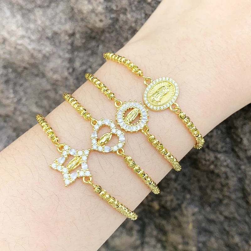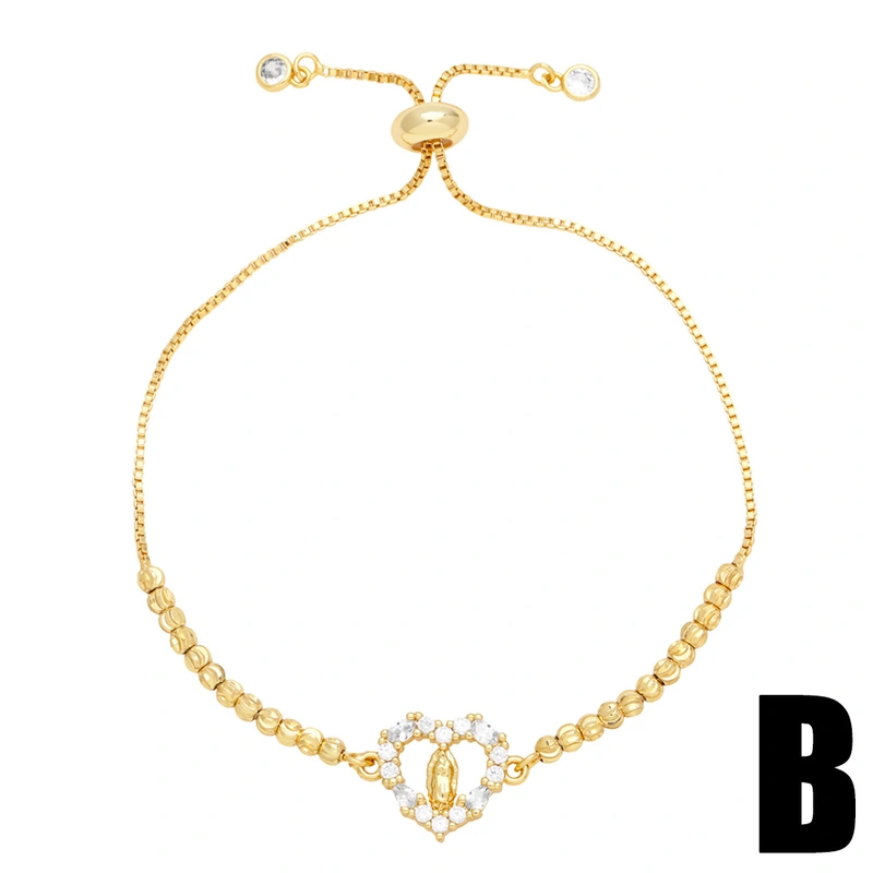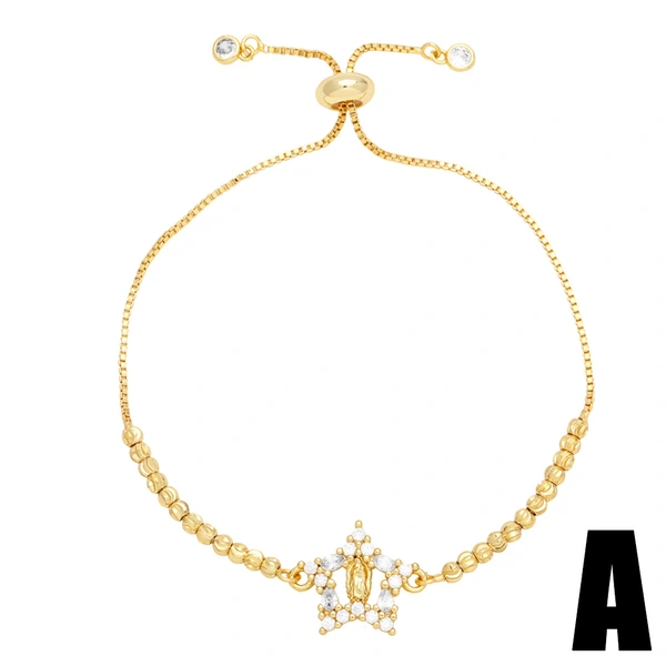 Bracelet en or véritable plaqué cuivre, entièrement en zirconium, 26 lettres anglaises, bijoux ajustables, brm62