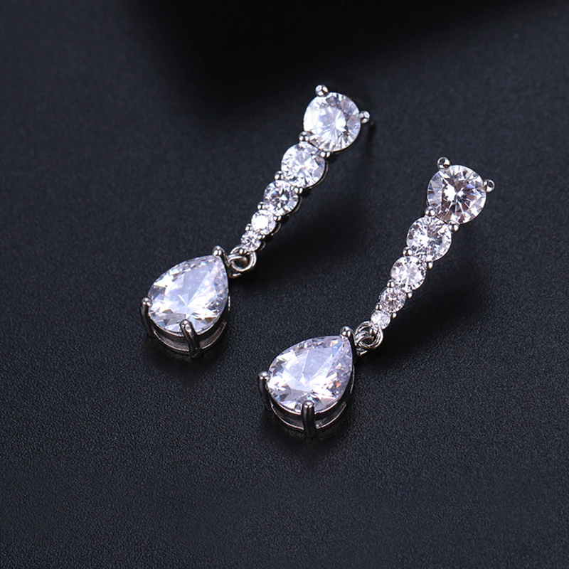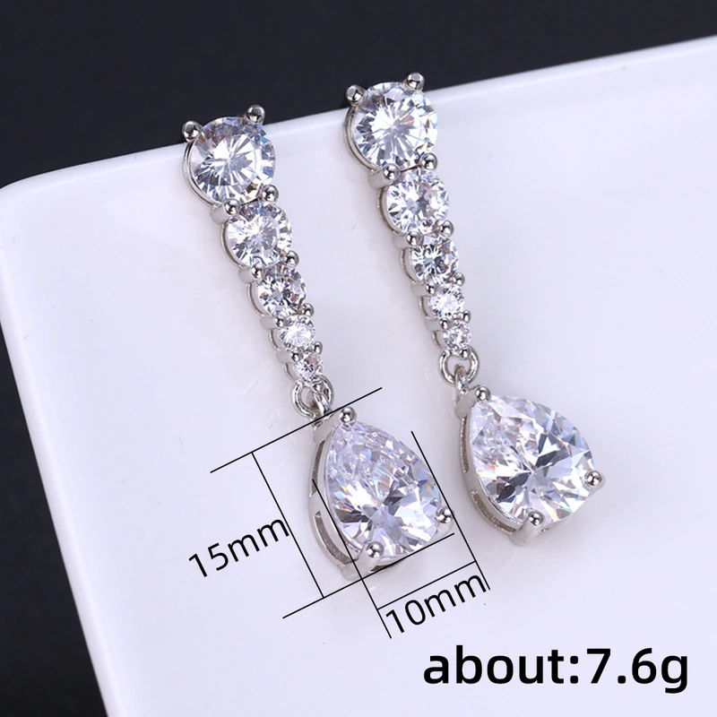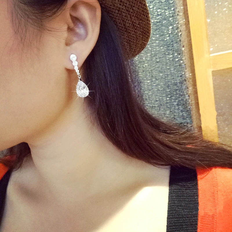 Bijoux fantaisie en gros, boucles d'oreilles pendantes de mariage en forme de poire, boucles d'oreilles longues en argent zircon AAA pour femmes