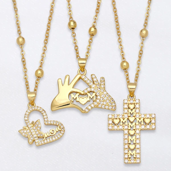 Bijoux pour la fête des mères les plus vendus en Europe et en Amérique, collier ras du cou de luxe de niche avec lettre « maman » et croix d'amour nkb038