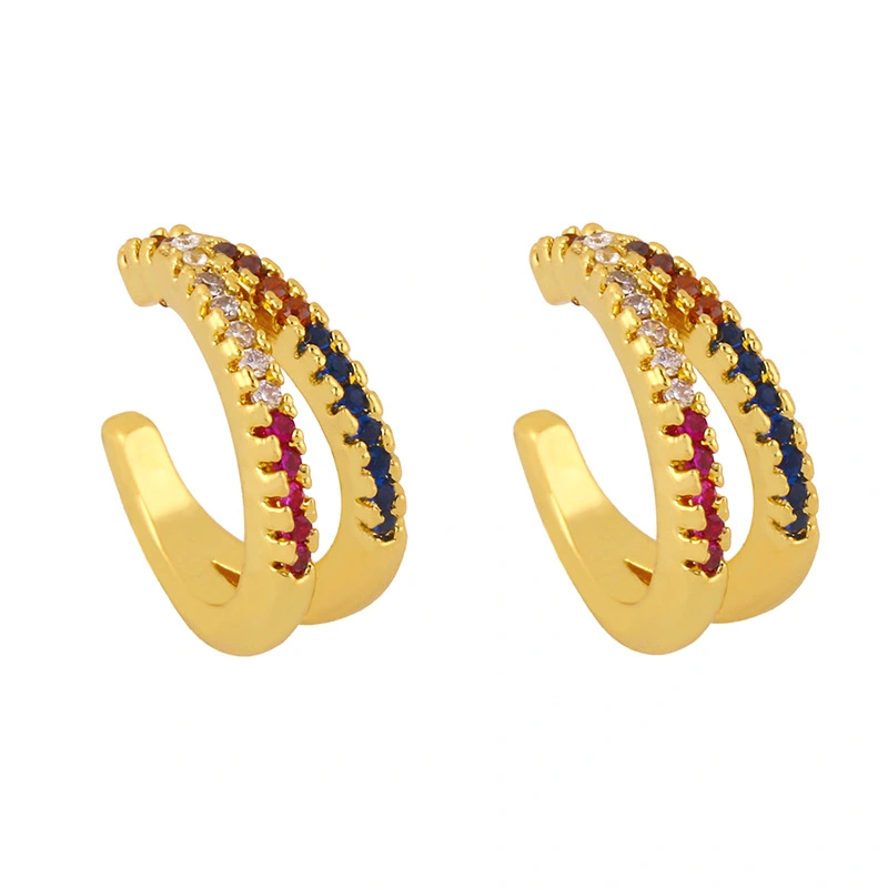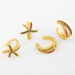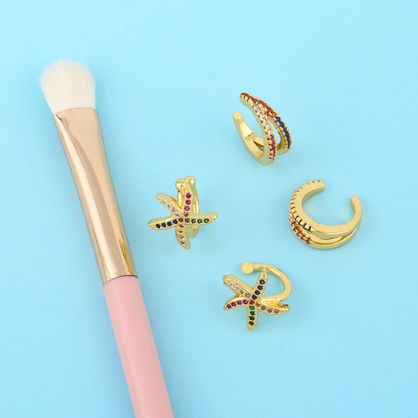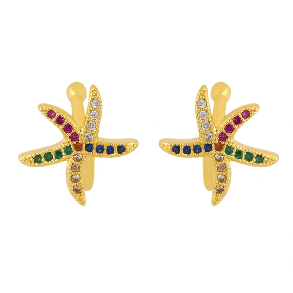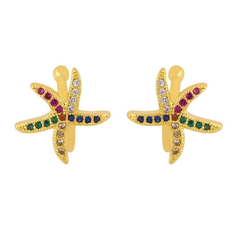 Boucles d'oreilles à clip en zircon, style européen et américain, sans piercing, en forme d'étoile de mer, avec pierres précieuses colorées incrustées en forme de C, pour femme, eru55