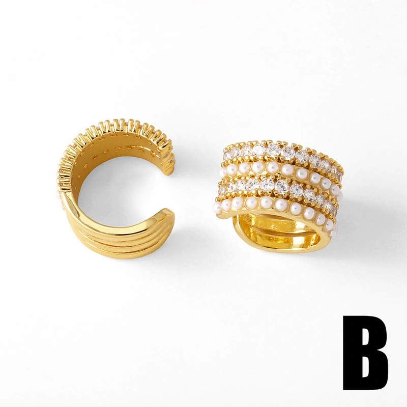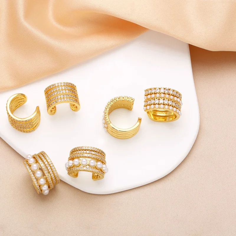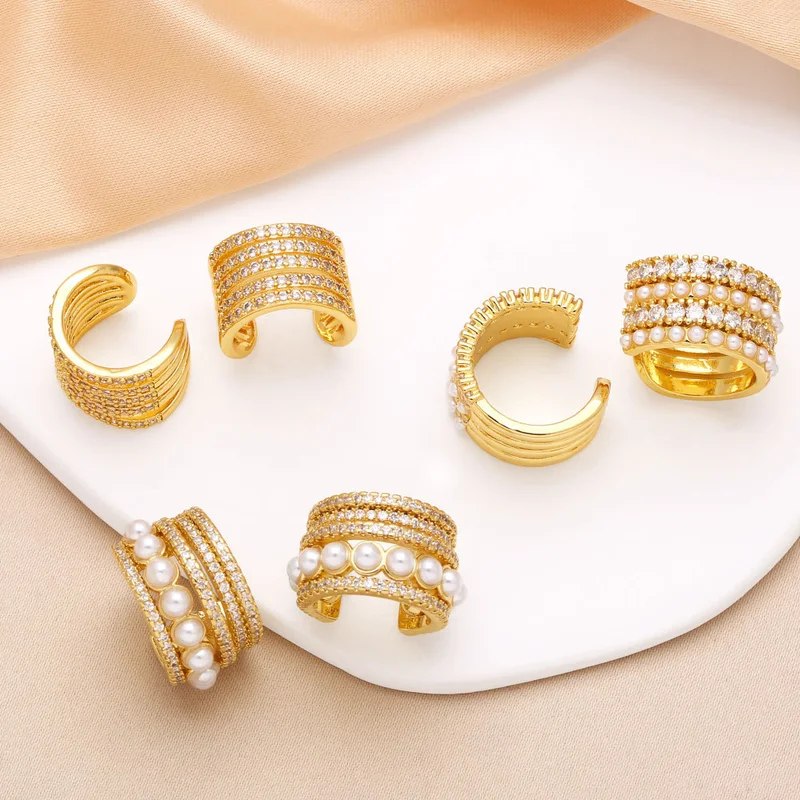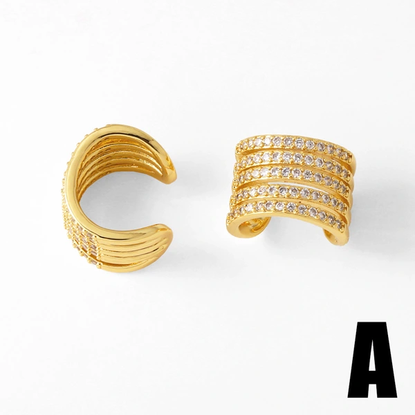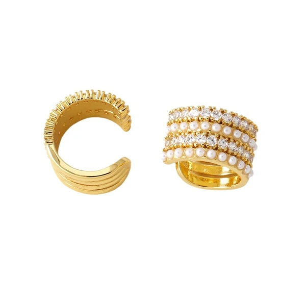 Boucles d'oreilles à double rangée en plaqué cuivre véritable or incrusté de zircons, bijoux tendance en Europe et aux États-Unis, boucles d'oreilles clip en os d'oreille era351