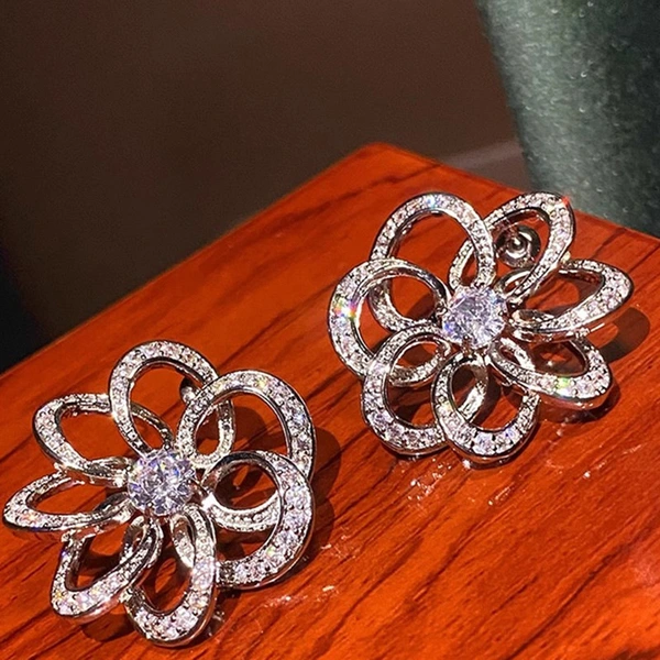 Boucles d'oreilles à fleurs de ligne européenne et américaine pour femmes, boucles d'oreilles de style de luxe léger incrustées de boucles d'oreilles élégantes en zircon