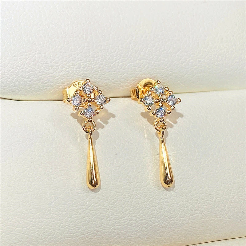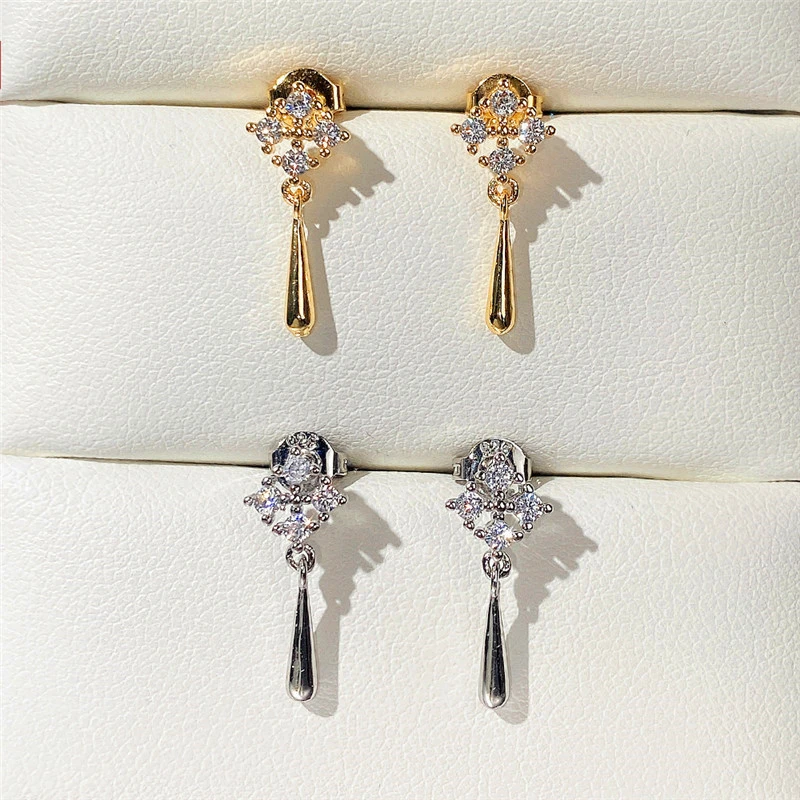 Boucles d'oreilles à pampilles en diamant, version coréenne, mini boucles d'oreilles géométriques en zircon léger de luxe haut de gamme, nouveauté printemps 2022