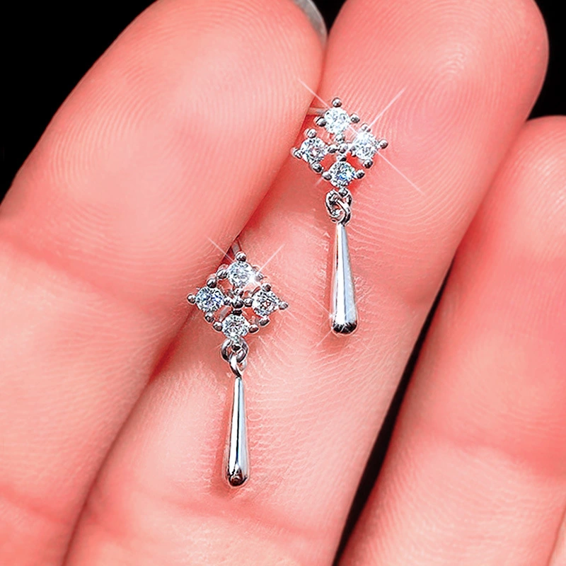Boucles d'oreilles coréennes exquises en micro-incrusté de zircon, super brillantes, polyvalentes au quotidien, boucles d'oreilles de luxe haut de gamme légères fabricant source