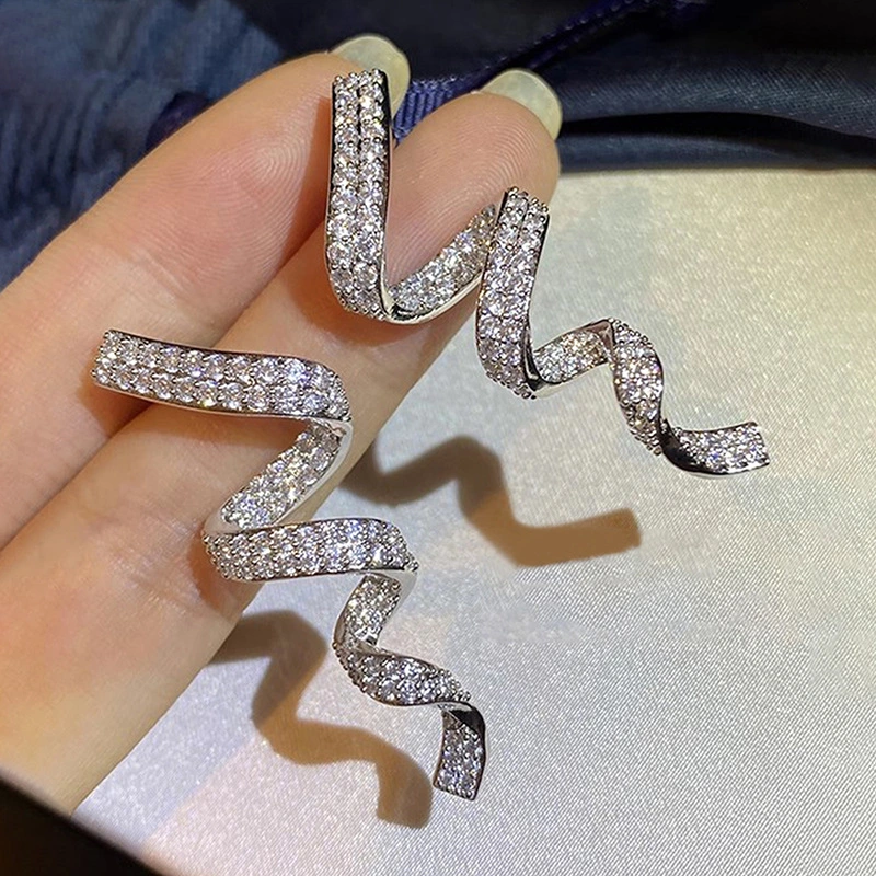 Boucles d'oreilles à ruban croisé européen et américain pour femmes, banquet à la mode, boucles d'oreilles assorties brillantes, boucles d'oreilles super populaires