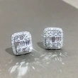 Boucles d'oreilles carrées en zircon personnalisées, boucles d'oreilles pour femmes à la mode et populaires, boucles d'oreilles légères en platine et diamant de luxe, bijoux d'oreilles