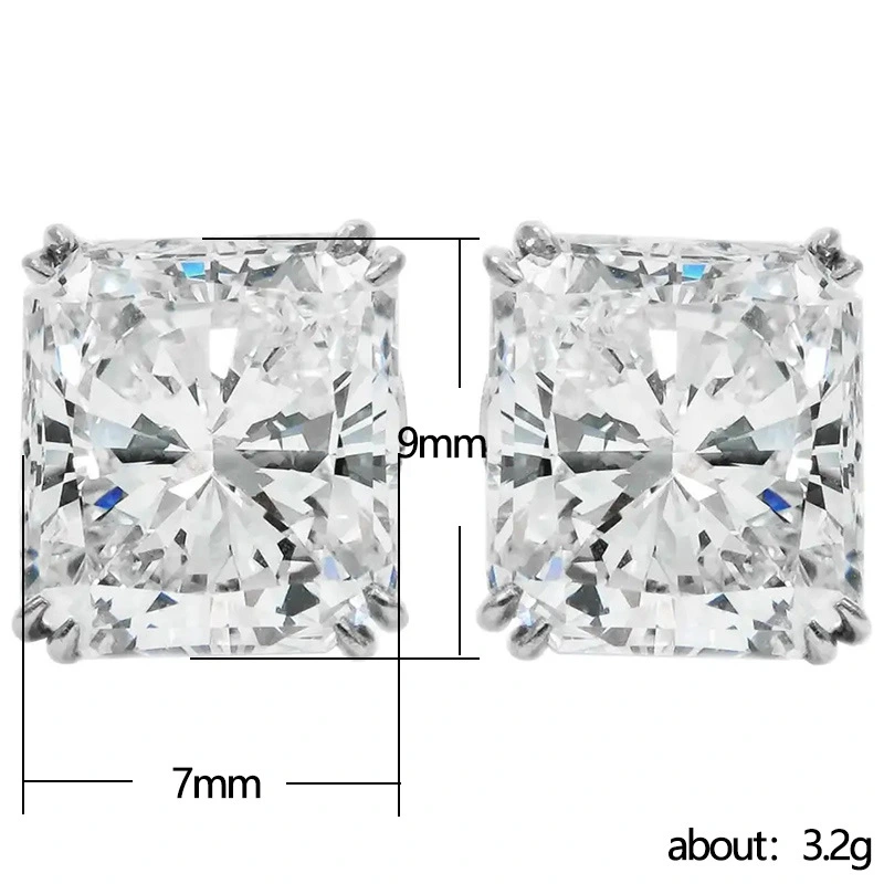 Boucles d'oreilles classiques européennes et américaines, boucles d'oreilles princesse carrées à quatre griffes en diamant, style unisexe, fabricant de boucles d'oreilles polyvalentes