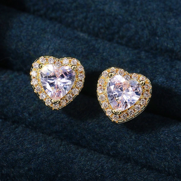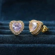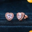 Boucles d'oreilles classiques européennes et américaines en zircon en forme de cœur pour femmes, boucles d'oreilles entièrement en diamant et plaquées or rose, boucles d'oreilles populaires