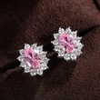 Boucles d'oreilles colorées en forme de fleur de tempérament de mode européenne et américaine pour femmes bijoux d'oreilles en zircon créatifs et généreux en gros